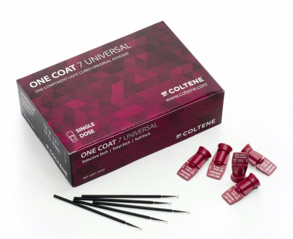 One Coat 7.0 Grabado y adhesión One Coat 7.0 es un adhesivo autograbante fotopolimerizado monocomponente de 7.ª generación diseñado para grabar, imprimar y adherir sin esfuerzos en cualquier superficie. Una botella: menos componentes para ahorrar tiempo y minimizar la confusión Una capa: sin reaplicación ni periodo de espera Rápida aplicación en 35 segundos: menos pasos para ahorrar tiempo y minimizar errores Fórmula de baja evaporación: sin disolventes volátiles a base de acetona que se evaporan rápidamente Tecnología de nanorrelleno: proporciona una capa de adhesión homogénea y mejora las propiedades mecánicas Excelente resistencia adhesiva al cizallamiento Integridad marginal superior con bajo riesgo de sensibilidad marginal Antibacteriano* One Coat 7.0 Activator: compatibilidad con los materiales de fraguado químico Presentación: One Coat 7.0 Activator One Coat 7.0 Activator 3 ml Pinceles negros 50 uds.