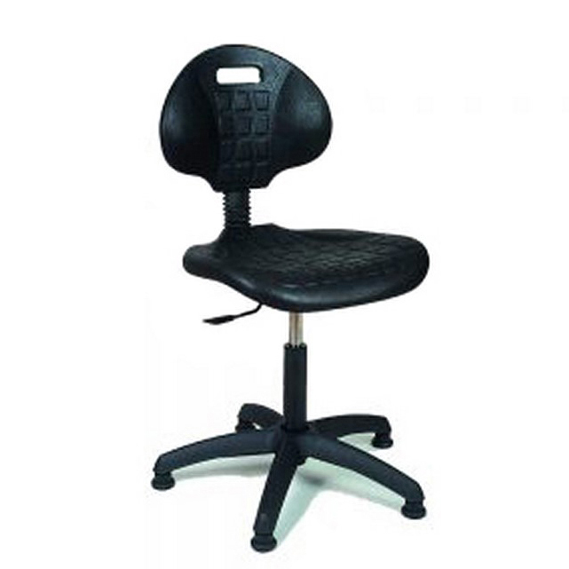 SILLA DE LABORATORIO, GIRATORIA, REGULACION NEUMATICA Estructura metálica de cinco apoyos Asiento y respaldo anatómicos de madera en color natural Respaldo regulable en altura y profundidad Asiento giratorio regulable en altura con columna neumática Opcional con ruedas Ref. 050500 - SILLA MADERA ANATOMICA GIRATORIA, REGUL. NEUMATICA